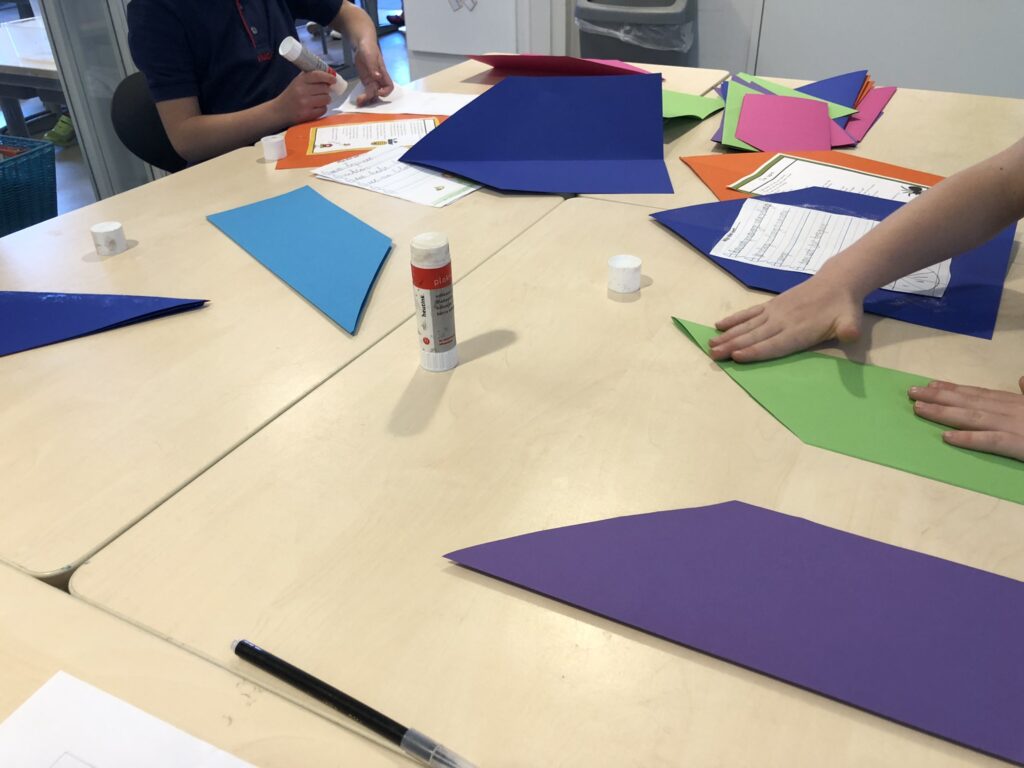 Wanneer alles in elkaar geplakt is, is het een kwestie van vouwen en de huisjes waren klaar! Voordat de huisjes een mooi plekje kregen op de gang, hebben we ze aan elkaar gepresenteerd in de kring. Iedereen mocht vertellen over zijn dier, maar ook over hoe het tot stand komen van hun huisje ging.