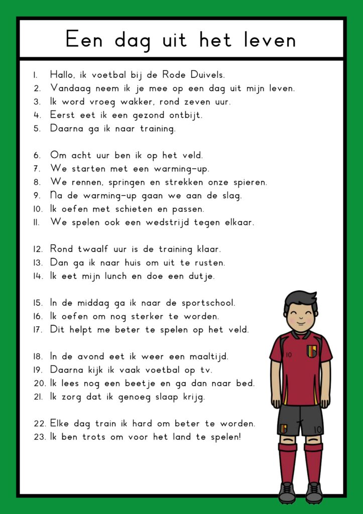 In deze bundel vind je 10 teksten rondom het thema EK voetbal (België). De teksten zijn in kleur en zwart-wit beschikbaar. Ze zijn zoveel mogelijk geschreven op avi E3 niveau.