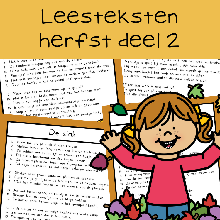 In deze bundel vind je 10 teksten rondom de herfst. Bij elk onderwerp is een tekst voor groep 4 geschreven. De teksten zijn zowel in kleur als in zwart-wit beschikbaar.