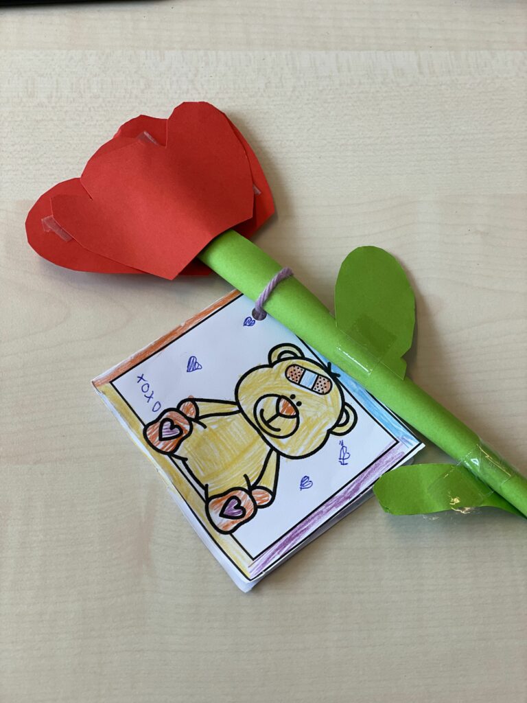 - Meestal zit er bij een boeket een klein kaartje. Laat de kinderen deze kaartjes knippen van gekleurd papier. De kaartjes kunnen versierd worden en op het kaartje kan een boodschap worden geschreven.