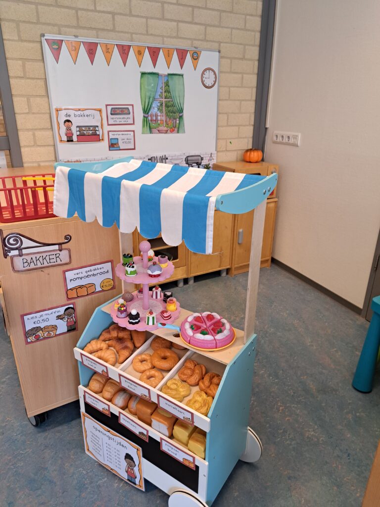 Nu kan de hoek ingericht worden! Laat de kinderen lekker meehelpen met het neerzetten van alles wat jullie verzameld hebben. Bespreek samen waar de spullen moeten staan en wat ze nog zelf kunnen knutselen om de bakkerij echt af te maken.
