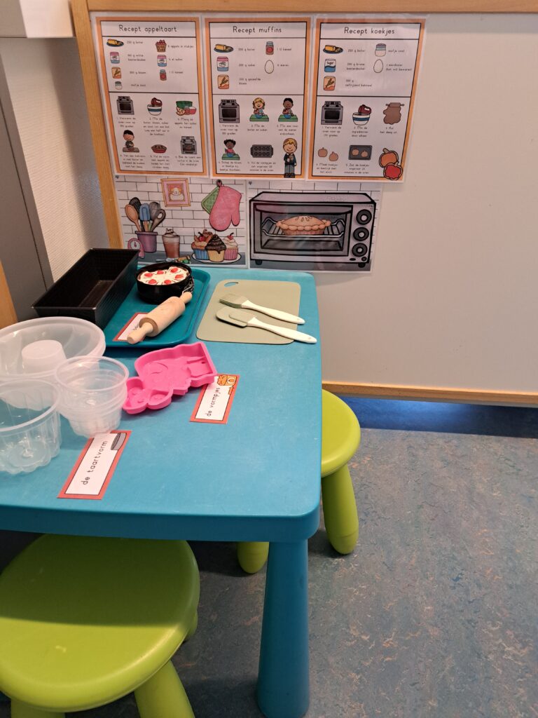 Vraag kinderen om spulletjes van thuis mee te nemen, zoals lege verpakkingen of bakvormpjes. Dit maakt de hoek nog specialer!