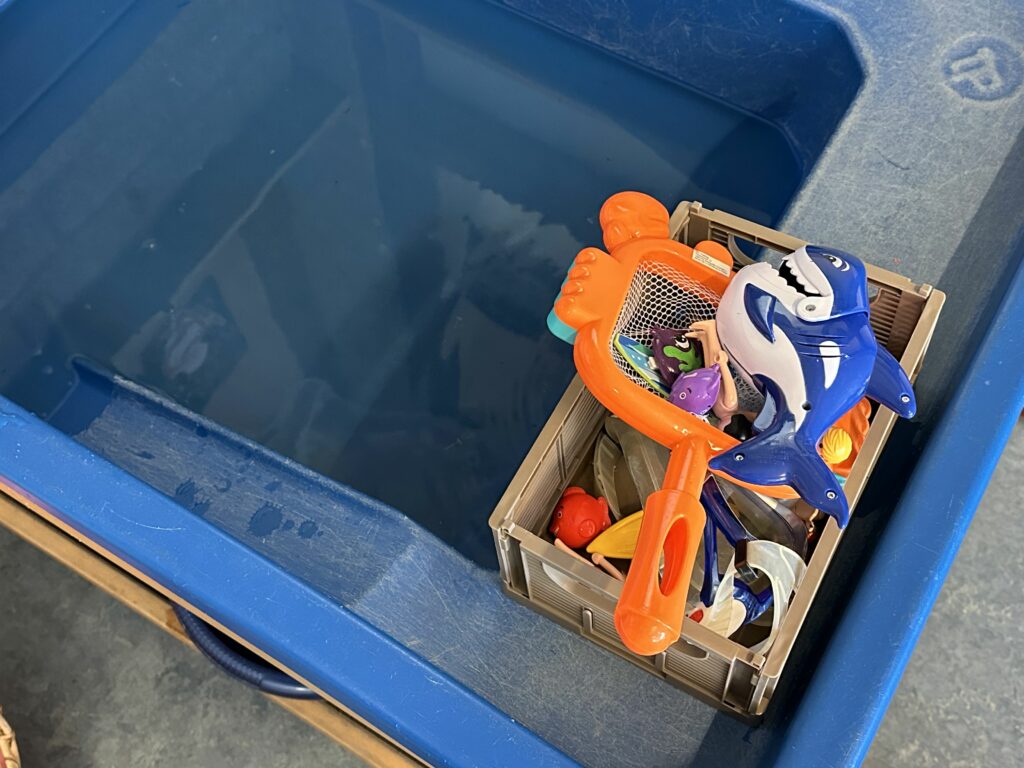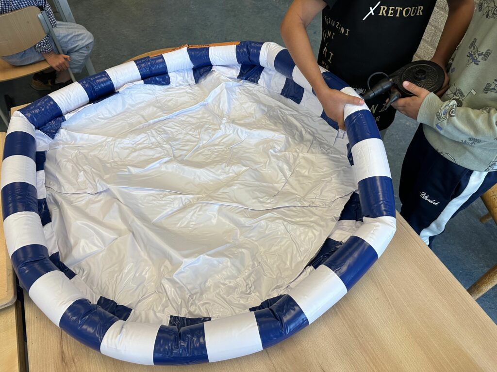 - Laat de kinderen een plan en/of een plattegrond maken voor de inrichting van de zwembadhoek. Denk hierbij aan een kleedruimte, zwembadgedeelte en een plek voor de badmeester.