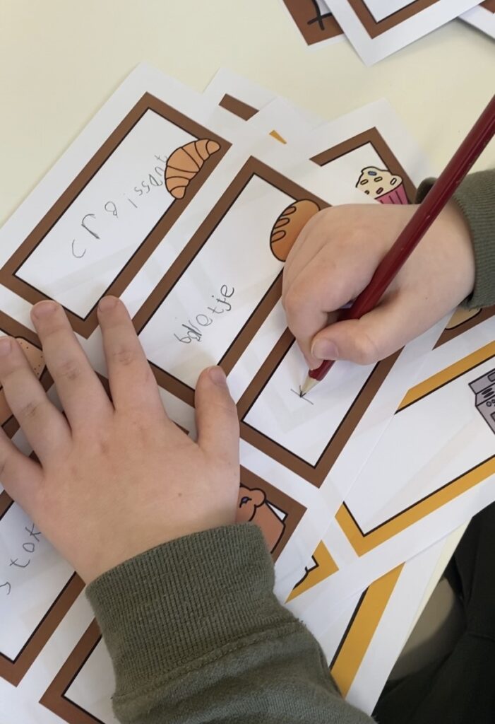 Bekijk hoe kinderen geconcentreerd aan het werk zijn met het schrijven van labels voor de broodjes en croissantjes. Zo oefenen ze spelenderwijs met schrijven en zien ze direct het resultaat van hun werk.