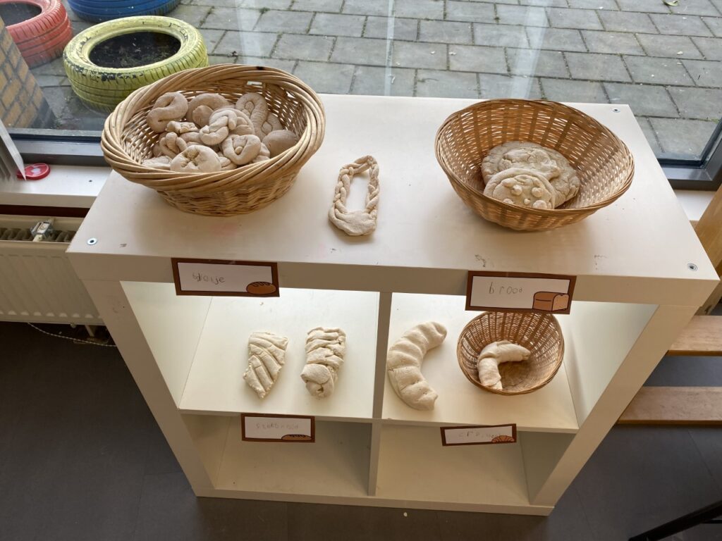 - Spullen verzamelen: Wat hebben we al in de klas? Wat kunnen we zelf maken? Zoals lege verpakkingen voor het broodrek of kleine mandjes voor croissantjes.