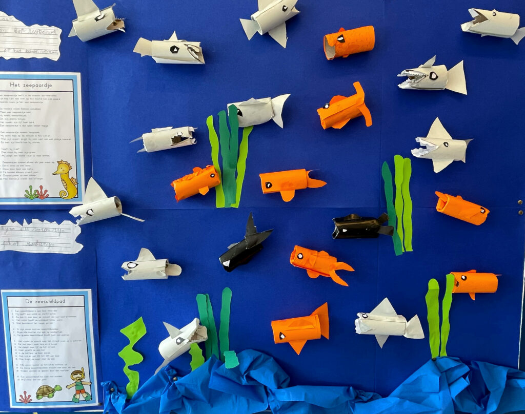 Voorbeeld: Voor een thema ‘Onderwaterwereld’ kun je de kinderen vragen om hun eigen fantasiezeedier te tekenen en er een kort verhaal over te schrijven. Deze kunstwerken kunnen dan als decoratie in de klas worden opgehangen, waardoor de ruimte direct in de sfeer van het thema komt.