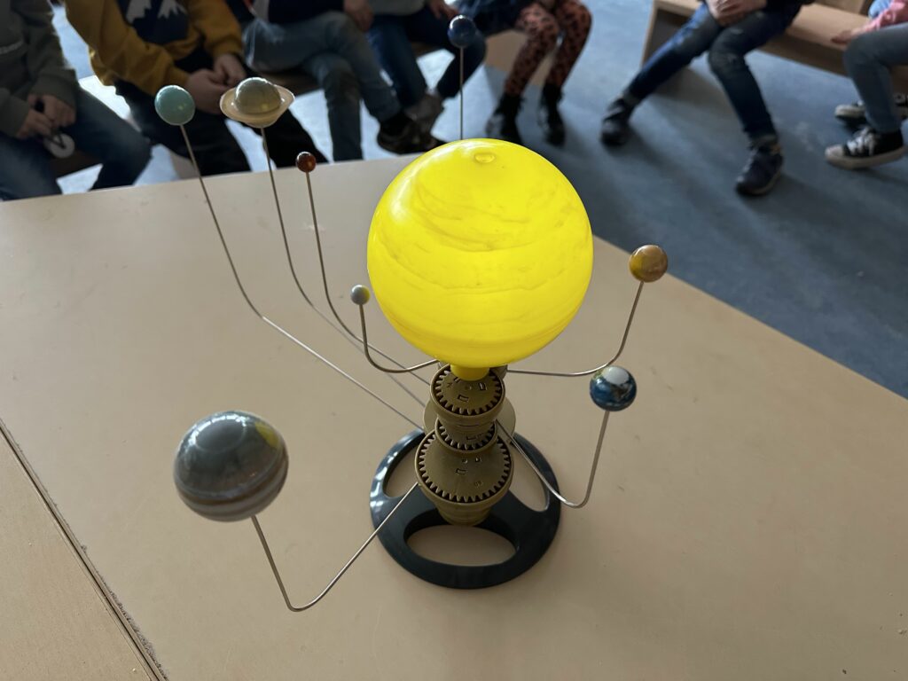 Voorbeeld: Voor een thema over de ruimte kun je een ‘zonnestelsel’ meenemen. Vertel de kinderen over het heelal en de planeten. Wat weten de kinderen al over dit onderwerp?